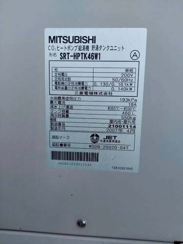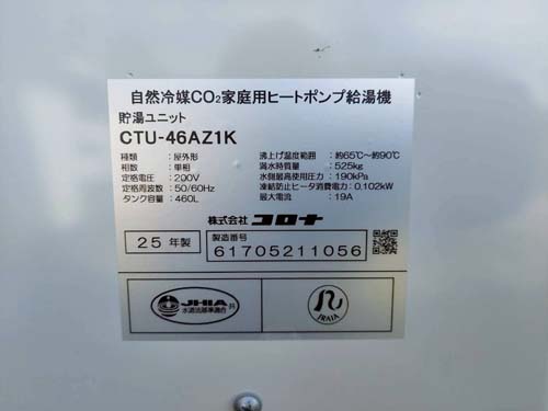 石巻市中央 三菱電機CO2ヒートポンプ給湯機 貯湯タンクユニット SRT-HPTK46W1→コロナ自然冷媒CO2家庭用ヒートポンプ給湯機 ヒートポンプユニットCHP-DZ601K、貯湯ユニットCTU-46AZ1K エコキュート交換工事