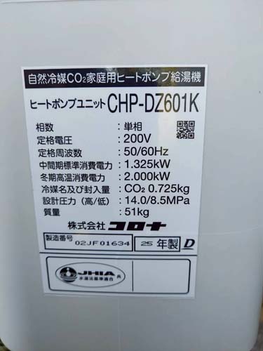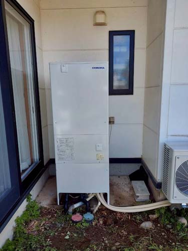 石巻市中央 コロナ自然冷媒CO2家庭用ヒートポンプ給湯機 ヒートポンプユニットCHP-DZ601K、貯湯ユニットCTU-46AZ1K エコキュート交換工事