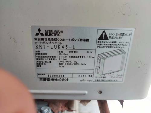 仙台市青葉区 三菱電機家庭用自然冷媒CO2ヒートポンプ給湯機 ヒートポンプユニットSRT-LUK45-L→ダイキン自然冷媒CO2・家庭用ヒートポンプ給湯機 ヒートポンプユニットRQW45YHV、貯湯ユニットTUA37YHV エコキュート交換工事